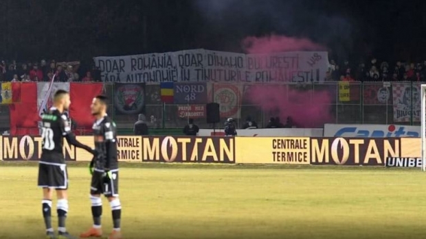 A szebb napokat is látott bukaresti csapat szombat este Sepsiszentgyörgyön játszott, ahol tavaly áprilisban – a szokásos verbális magyargyalázás mellett – zászlót raboltak és kerítést feszegettek elvadult és elvakult rajongóik. Idén a pályára ugyan nem jutottak be, így hát írásban üzenték meg, hogy hallani sem akarnak semmiféle autonómiáról, mert itt csak Románia és csak a Dinamo létezik. Na meg persze lelkesen kántálták a magyarellenes rigmusokat is.
