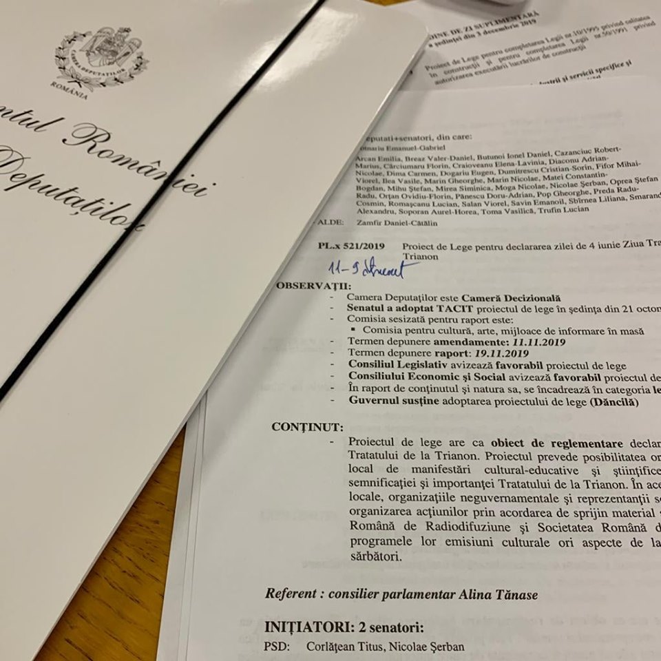 Újabb magyarellenes törvénytervezet kapott zöld jelzést a parlamentben: a képviselőház közigazgatási bizottsága tegnap kedvezően véleményezte azt a kezdeményezést, amely román nemzeti ünneppé tenné június 4-ét, a trianoni békediktátum aláírásának évfordulóját.
