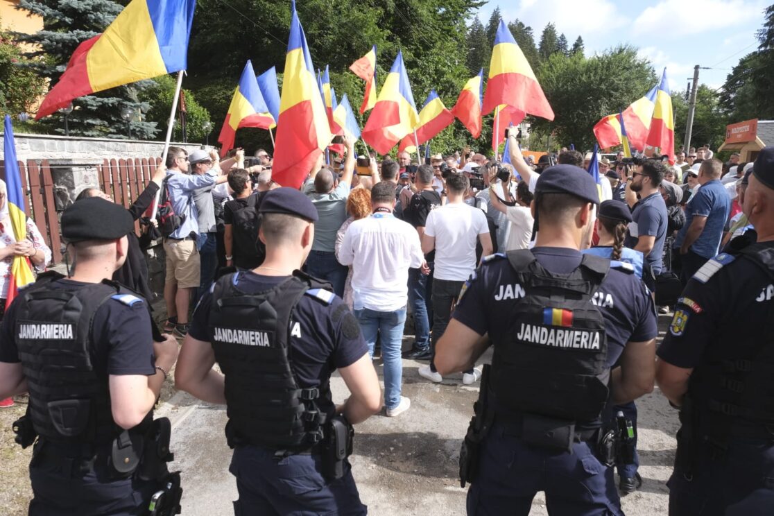 Mihai Tîrnoveanu, a Nemzet Útja szervezet vezetője, Dan Ciprian Grăjdeanu, az Ortodox Testvériség vezetője és a szélsőséges nacionalista nézeteket vallók egy kis csoportja tüntettek együtt Magyarország bukaresti nagykövetségének épülete előtt vasárnap délután. Mint mondták: az Orbán Viktor, Magyarország miniszterelnöke és társai által 33. Tusványos ideje alatt tett revizionista nyilatkozatok miatt szervezték a tüntetést.
