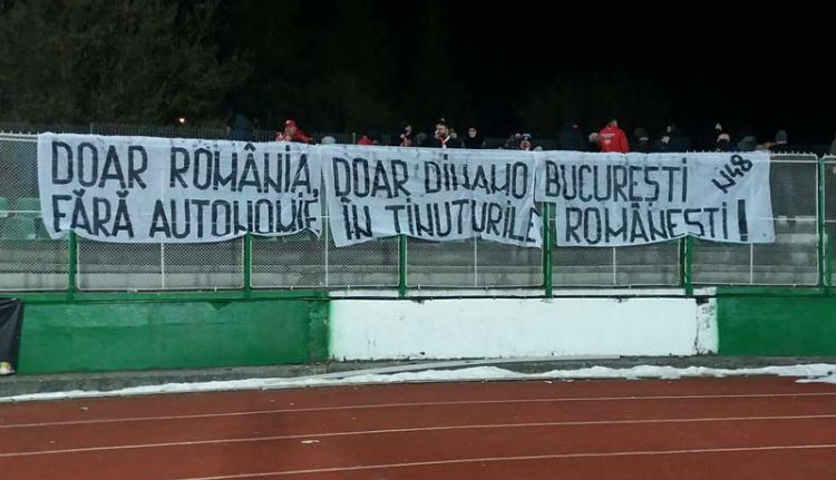 2019. február 9-én került megrendezésre a sepsiszentgyörgyi városi stadionban a Dinamo elleni labdarugó mérkőzés, amely során a Dinamo Bukarest csapat szurkolói folyamatosan a jól ismert „Kifelé a magyarokkal az országból!” szlogent skandálták, valamint egy molinót függesztettek ki, amin a következő szerepelt: „Csak Románia, csak Dinamo Bukarest, autonómia nélkül a román földeken” (“Doar România, doar Dinamo București fără autonomie în ținuturile românești”). A szlogent 8 alkalommal kiabálták a mérkőzés alatt, és 2 percenként lehetett hallani a magyarellenes bekiáltásokat.