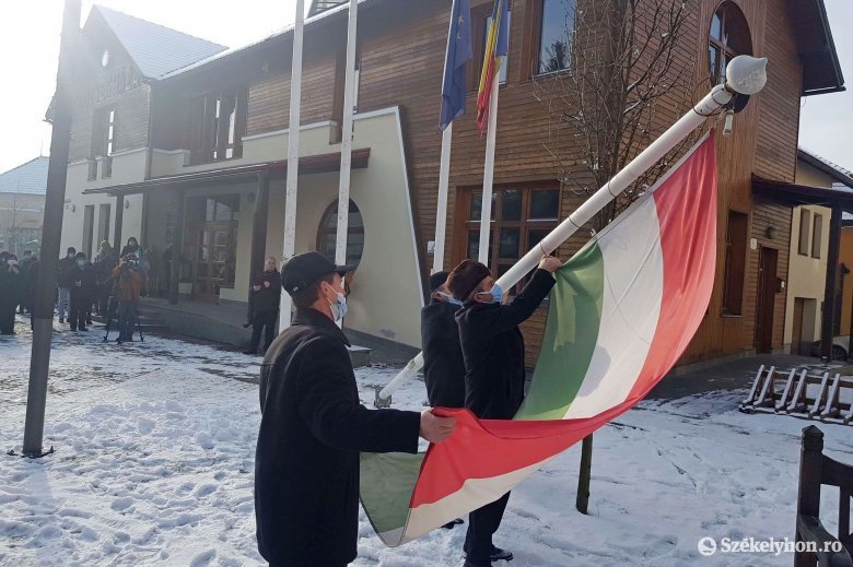 Szomorú eseményre, zászlólevonásra hívta a közösséget Gyergyóremete önkormányzata vasárnap délre. A bukaresti ítélőtábla végleges és visszavonhatatlan ítélete ugyanis kimondta, hogy a község főterén a községháza megépülése óta ott lobogó öt zászló közül hármat el kell távolítani.