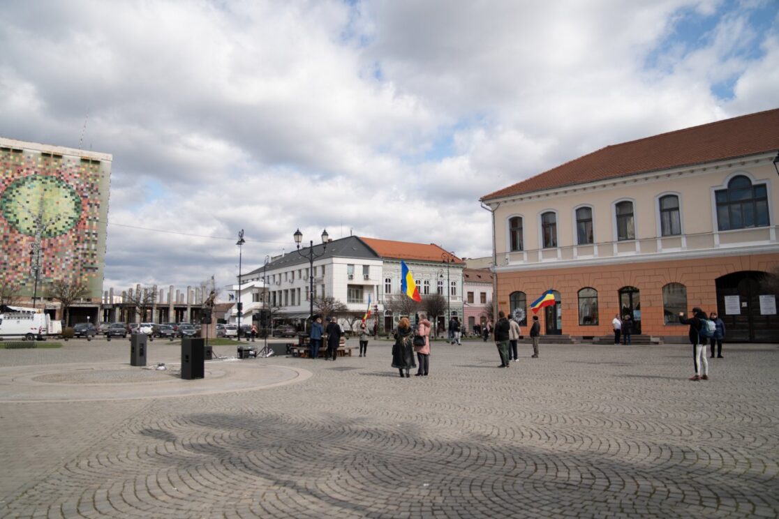 Nagyjából 8-10 személy vonult be a háromszéki megyeszékhely központjába csütörtökön, 13 óra 30 perc környékén Mihai Tîrnoveanu vezetésével. A társaság három román zászlót és négy hangszórót hozott magával, utóbbiakból fülsüketítő hangerővel szólnak a hazafias, román nóták. Mint kiderült, az akcióra engedélyük is van, a hatóságok szerint 17 óráig folytathatják a zenebonát.